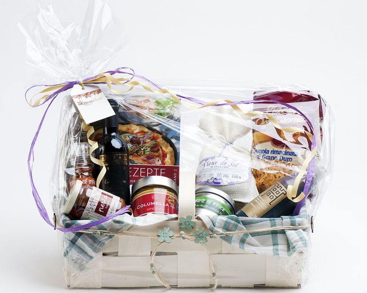 Gerne werden italienische, spanische oder südfranzösische Weine mit mediterranen Leckerein kombiniert. Wir haben eine große Auswahl an hochwertigen, oft in Manufakturen hergestellten, Lebensmitteln im Angebot. Stellen Sie mit uns gemeinsam ein individuelles Geschenk zusammen.