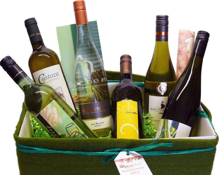 Viel Freude bereiten auch unsere jeweiligen Sommerwein- oder Rotwein-Probierpakete. Schlicht im geschlossenen Karton oder in einem Korb verpackt. Hier gehören Beschreibungen und eine Anleitung zur gemütlichen Verkostung zuhause dazu.