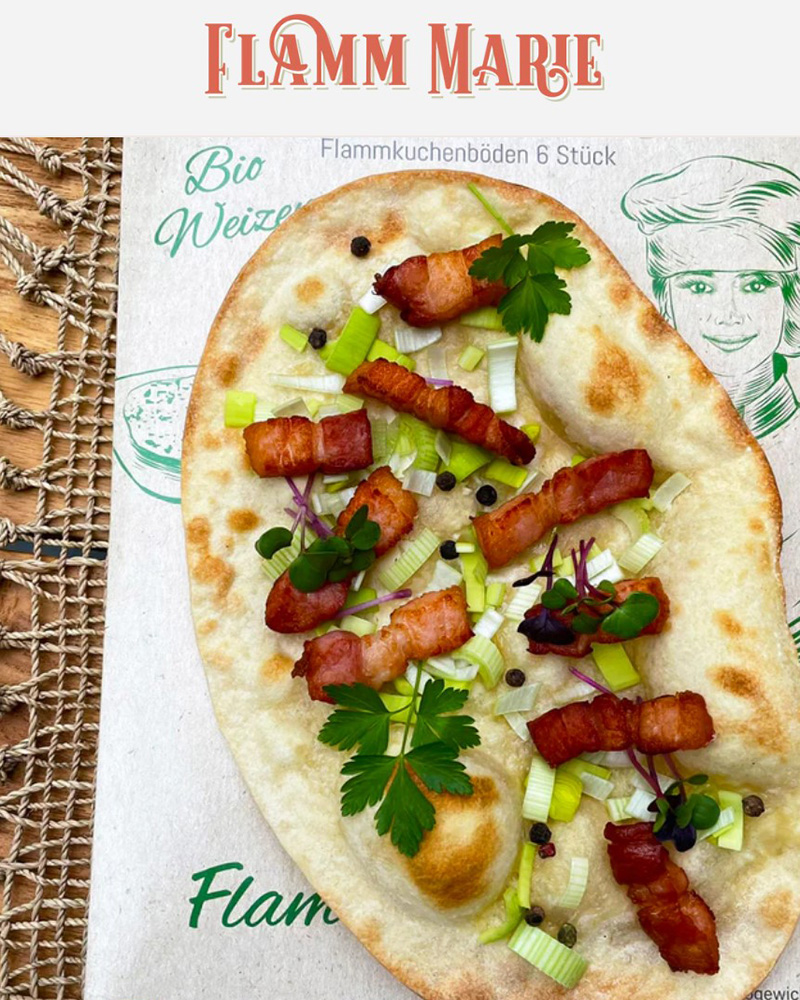 Trockener, ausgewogener Rotwein mit schmeichelndem Tannin und schönen BeerennotenFlammMarie Flammkuchenböden